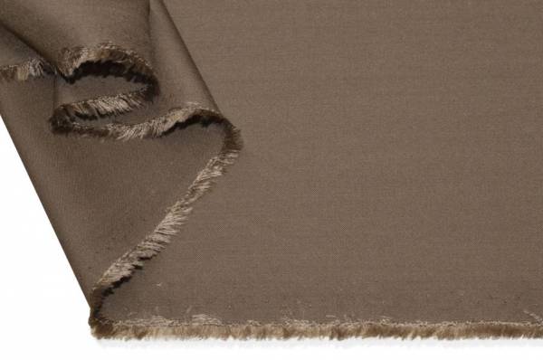 Tessuto misto lana e seta color nocciola, leggero e pettinato, caratterizzato da una mano morbida e piacevole al tatto. La combinazione dei due filati conferisce al tessuto un'altissima qualità unita a comfort, buona vestibilità e un’elegante caduta.