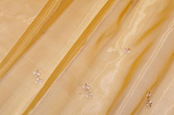 TESSUTO TENDA ORGANZA ORO CON FIORELLINO RICAMATO