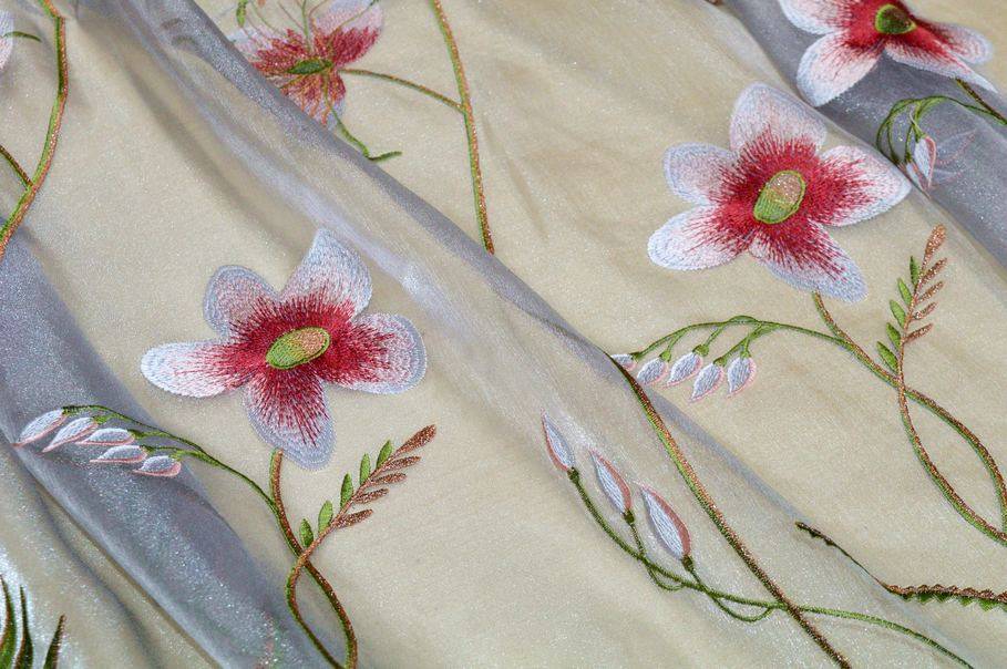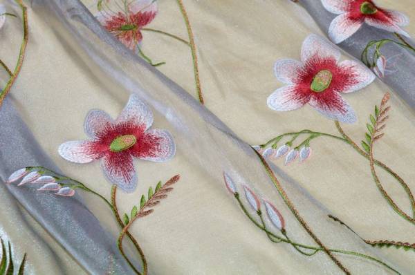 Vendita online tessuti per tende offerta tessuto tenda organza grigia con ricamo floreale - Tessuti & Stoffe