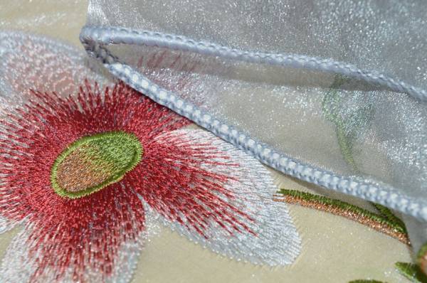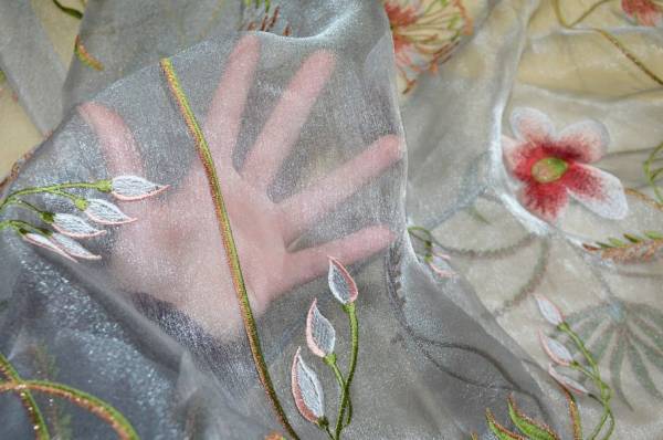 TESSUTO TENDA ORGANZA GRIGIA CON RICAMO FLOREALE