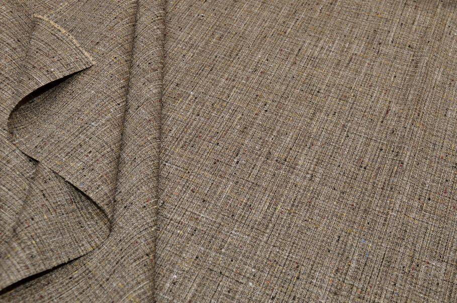 Tessuto misto seta ottenuto dall’unione di ottimi filati quali viscosa, cotone, lino e seta. Si presenta con una mano facilmente lavorabile. La superficie è caratterizzata da evidenti fiammature, con un gioco di tonalità che spazia dal marrone al beige. Adatto alla realizzazione di giacchette, tailleur, blazer, gonne e abiti.