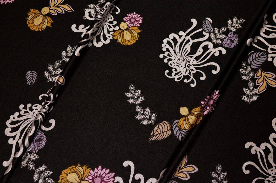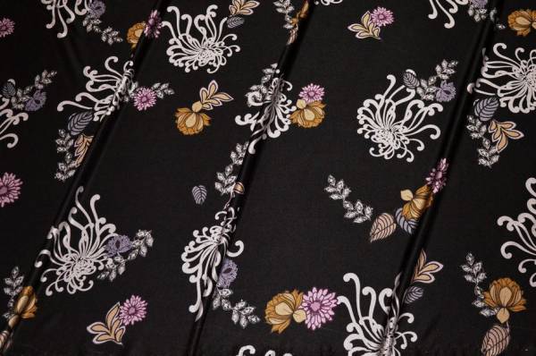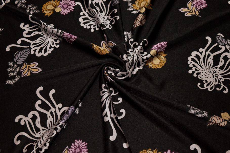 TESSUTO MAGLINA IN VISCOSA FANTASIA FLOREALE FONDO NERO