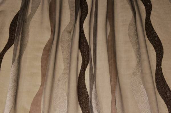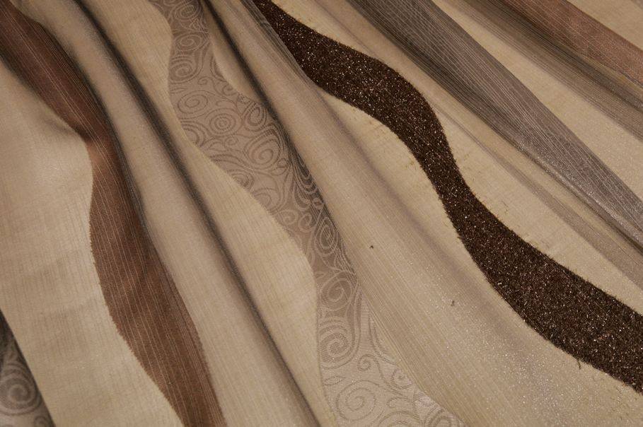 Tessuto per tendaggio in organza trasparente, caratterizzato da bande ondulate che creano un effetto decorativo lungo tutta l’altezza.