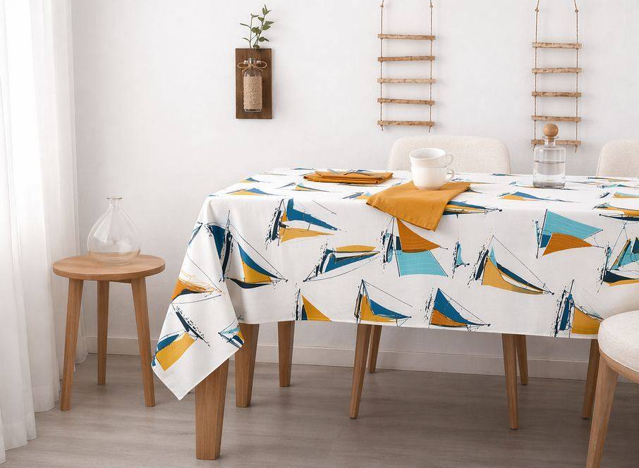 Vendita online tessuti arredo casa per tovaglie tessuto tovaglia misto lino fantasia vele - Tessuti & Stoffe