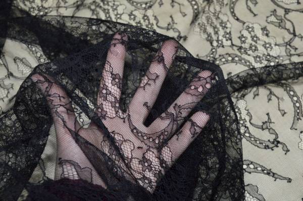 TESSUTO PIZZO CHANTILLY NERO