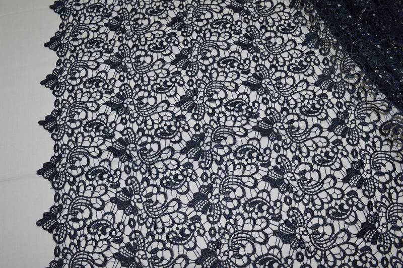 Vendita online tessuti abbigliamento crepe cady abbinamento cady larimar con pizzo macrame' col. blu - Tessuti & Stoffe