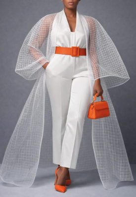 Tessuto in organza trasparente, leggera ma dalla struttura sostenuta, con ricamo a quadri in rilievo bianco, idoneo per camiceria e vestitini. Non forata