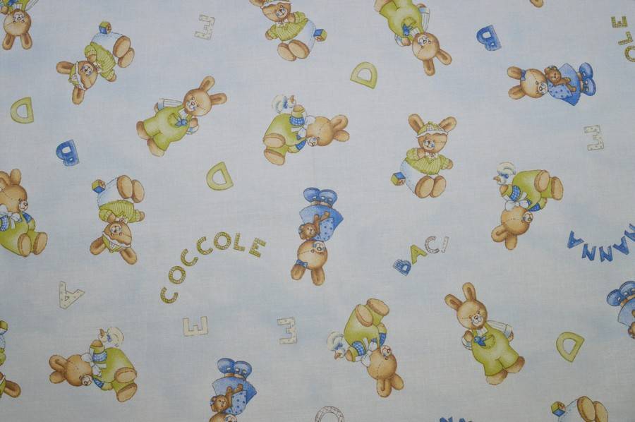 Tessuto pesantezza lenzuolo in puro cotone stampato ,idoneo per realizzare lenzuola e lavori d'arredo vari per camerette come copricuscini,rivestimenti per paracolpi, mantovane per copricassettoni e tanto altro.