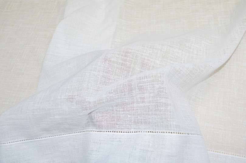 Tessuto medio leggero con trama effetto lino leggermente filtrante alla luce con bordi laterali da cm 5. Il prodotto è da confezionare facendo gli orli nel lato superiore ed in quello inferiore. Colore Bianco ottico (non panna).