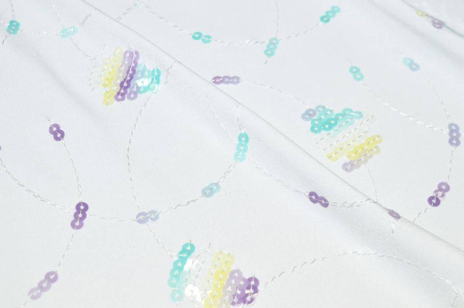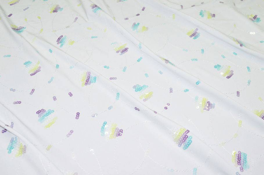 TESSUTO LYCRA BIANCA PAILLETES CUCITE