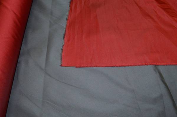 Tessuto doppio dritto, da un lato rosso e dall'altro lato grigio piombo, struttura molto rigida e sostenuta adatto per arredamenti d'interni , mantovane , sciarpone e abbigliamento donna utilizzato anche per capi con rifiniture in contrasto