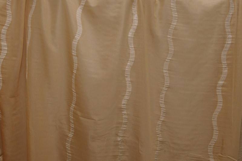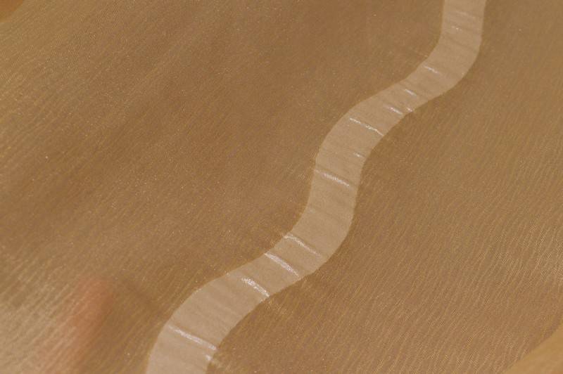 Tessuto in organza semicoprente dall'aspetto luminoso con inserto raso in tinta ogni 25 cm, idoneo per tende arricciate. Lavabile a 30°. No stiro