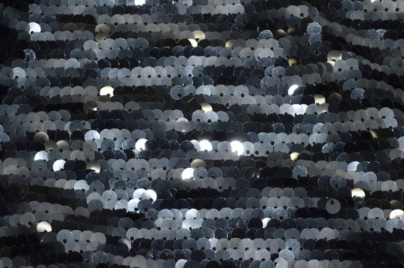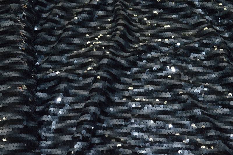 Paillettes tonde grigie e nere   di diametro 5 mm cucite su fondo maglina  strech adatto per abbigliamento elegante e cerimonia