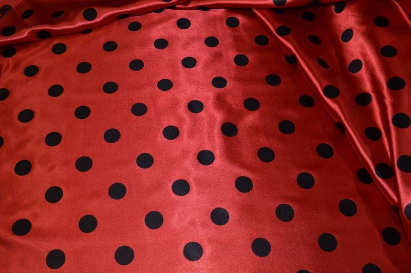 Vendita online ispirazioni carnevale tessuto fodera raso pois nero fondo rosso minnie - Tessuti & Stoffe