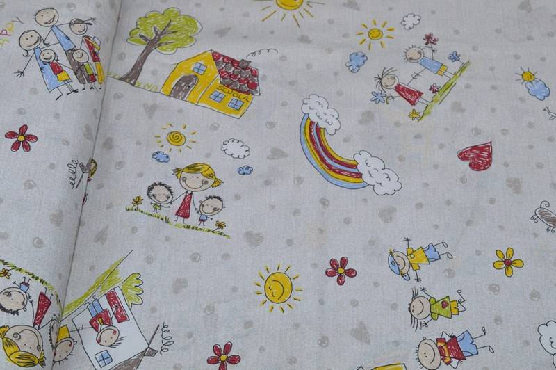 Vendita online tessuti arredo casa lenzuola metraggio cotone fantasia happy family - Tessuti & Stoffe
