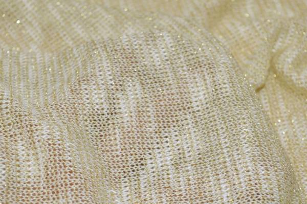 Tessuto in maglia morbido e leggero con filato leggermente lurex oro idoneo per realizzare maglie e abitini primavera/estate