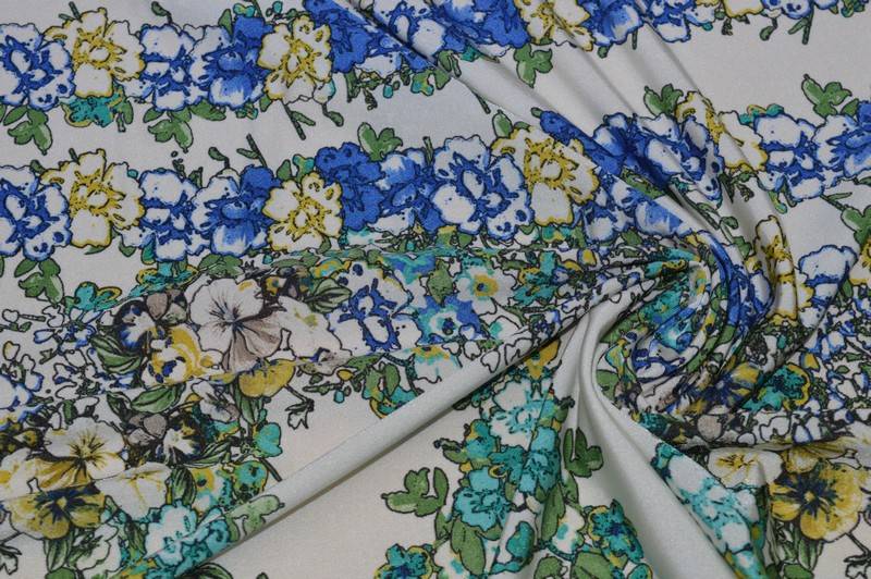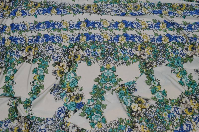 Vendita online tessuti abbigliamento viscosa maglina viscosa fiore azzurro/verde - Tessuti & Stoffe