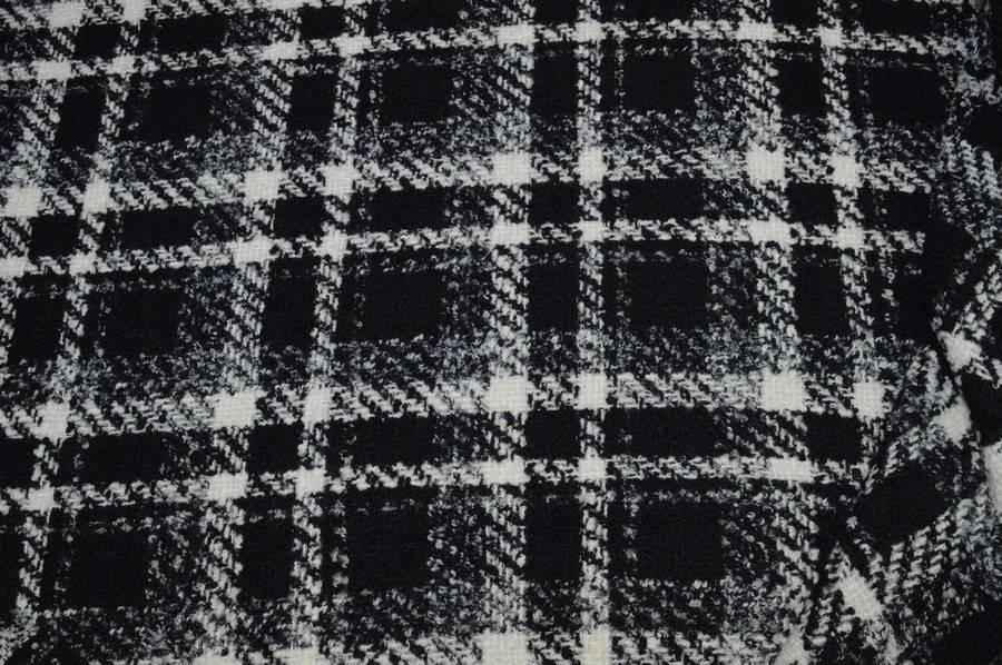 TESSUTO BUCLE MISTO LANA SCACCHI BIANCO/NERO