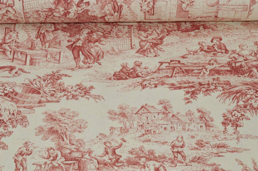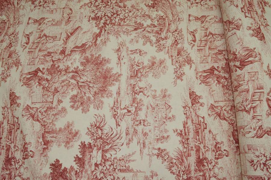 Vendita online cotoni toile de jouy tessuto cotone panama toile de jouy rosso - Tessuti & Stoffe