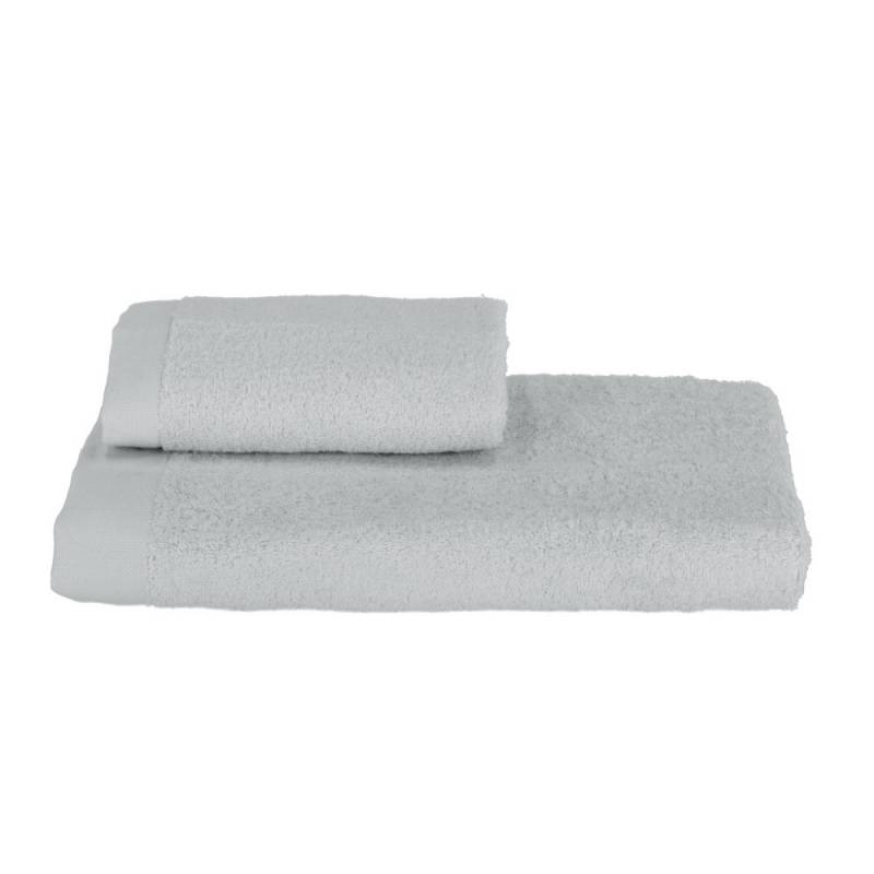 Parure composta da un asciugamano e un ospite in spugna tinta unita con cesello jacquard finale.