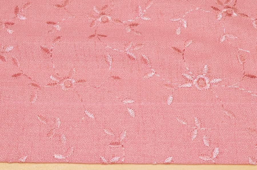 Tessuto abbastanza coprente  ricamato su fondo rosa accesso. Tendino di facile manutenzione, lavabile in lavatrice a 30° ed estremamente resistente