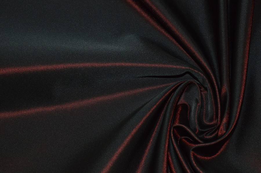 Vendita online tessuti abbigliamento poliestere tessuto satin duchesse rosso cangiante nero - Tessuti & Stoffe