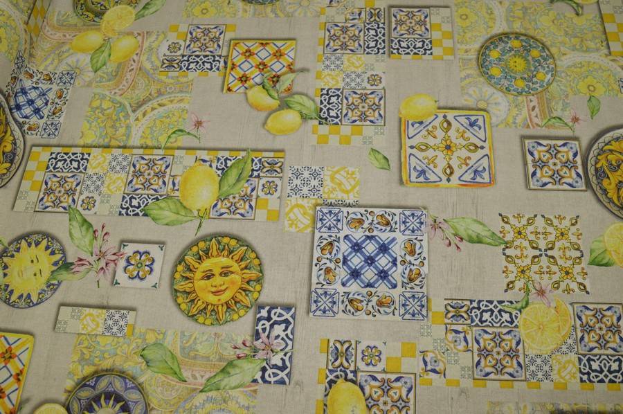 Vendita online tessuti arredo casa per tovaglie tessuto antimacchia cotone fantasia limoni - Tessuti & Stoffe