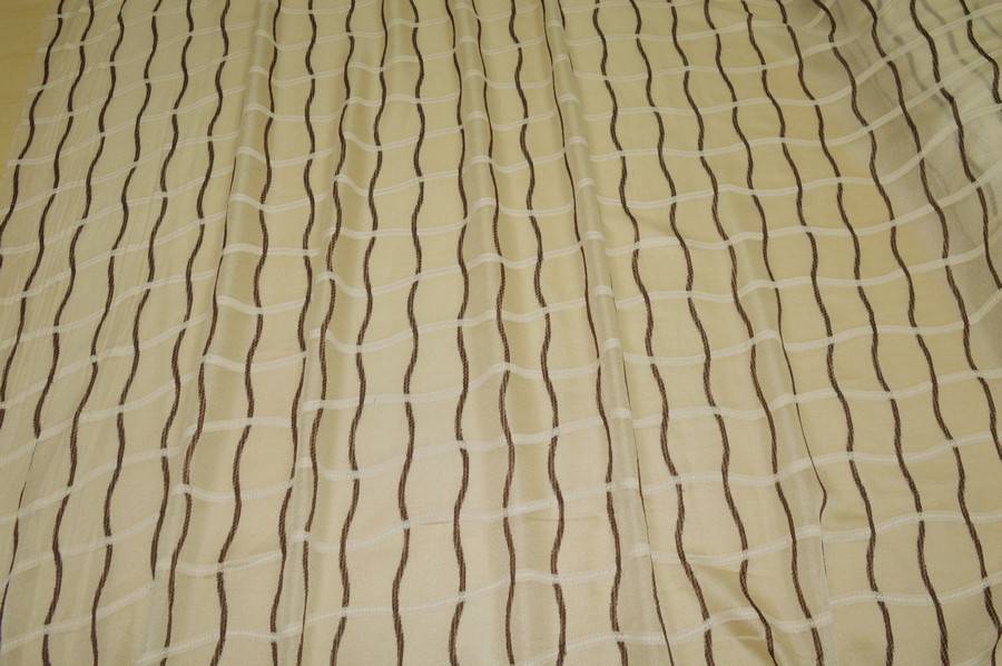 Tessuto morbido e leggero, fondo beige e scacco marrone, idoneo per realizzare qualsiasi modello di tenda arricciata