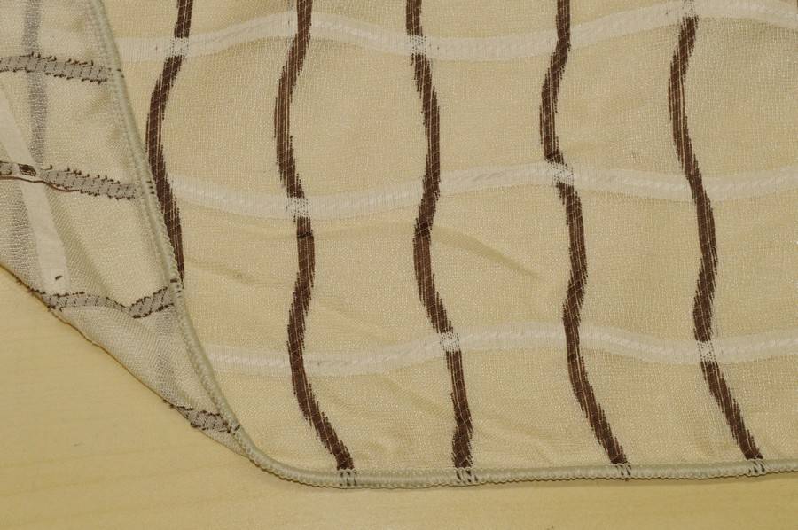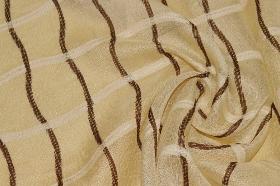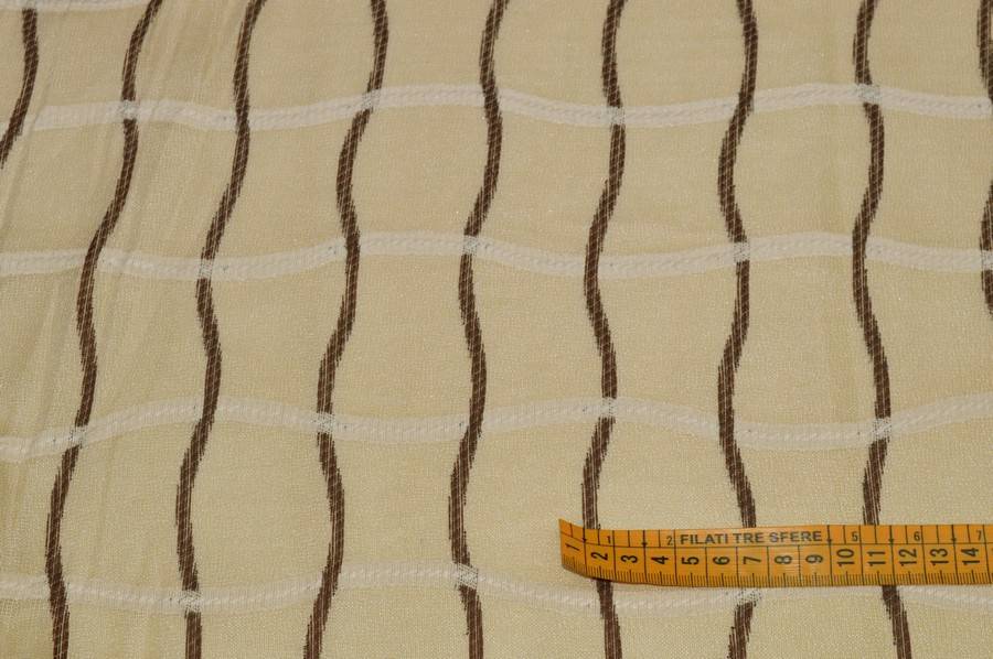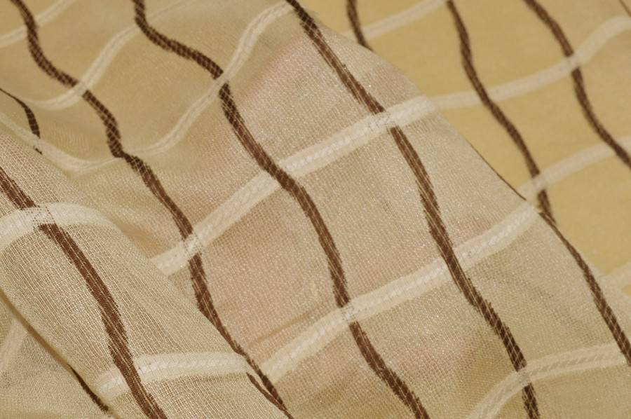 Tessuto morbido e leggero, fondo beige e scacco marrone, idoneo per realizzare qualsiasi modello di tenda arricciata