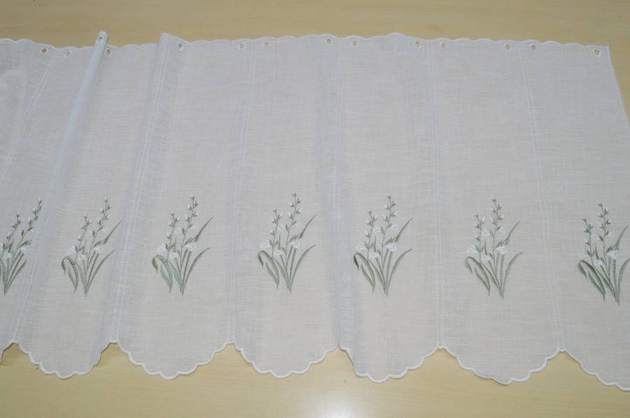 Vendita online tessuti per tende tendine metraggio vetro tendino effetto lino ricamato calle altezza cm 60 - Tessuti & Stoffe