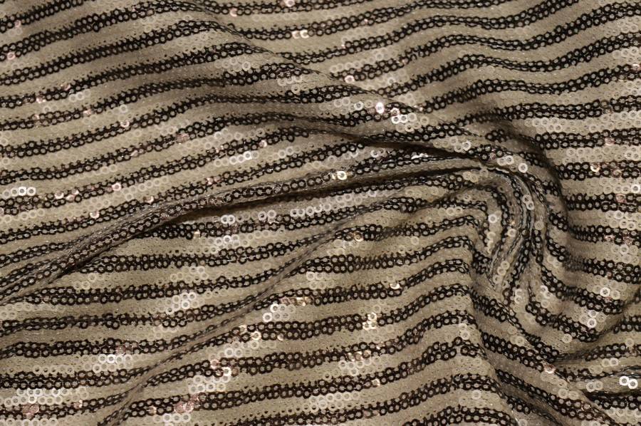Vendita online tessuti abbigliamento paillettes paillettes cucite stretch riga beige/marrone scuro - Tessuti & Stoffe