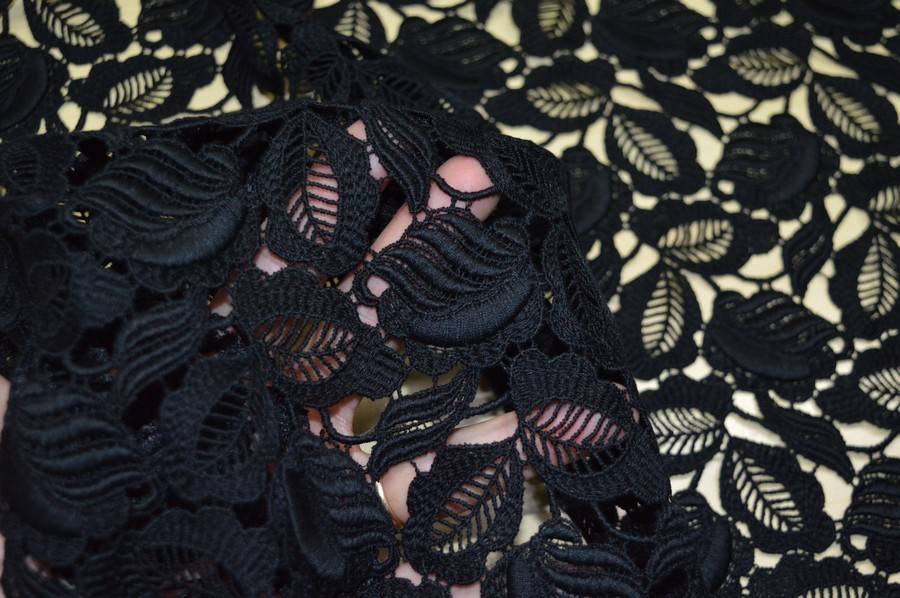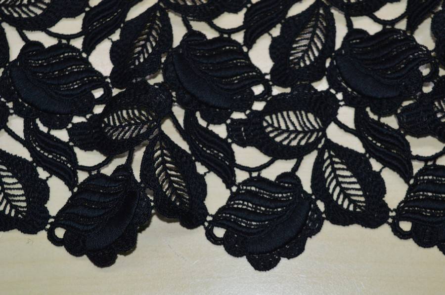 Vendita online tessuti abbigliamento ricamati pizzi tessuto pizzo macrame' foglia nera - Tessuti & Stoffe