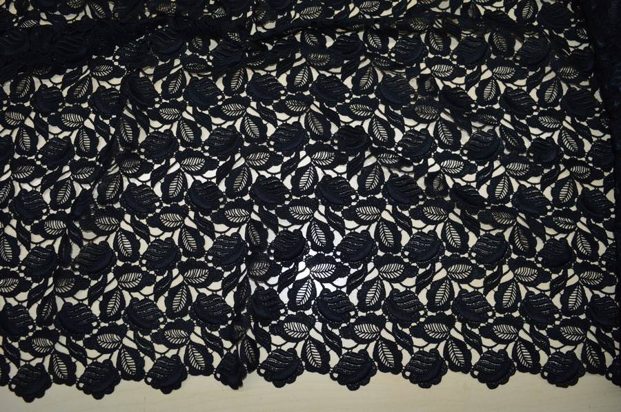 Vendita online tessuti abbigliamento ricamati pizzi tessuto pizzo macrame' foglia nera - Tessuti & Stoffe