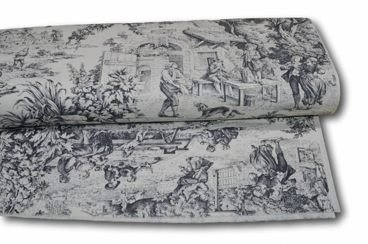 Vendita online cotoni toile de jouy tessuto cotone panama toile de jouy grigio - Tessuti & Stoffe