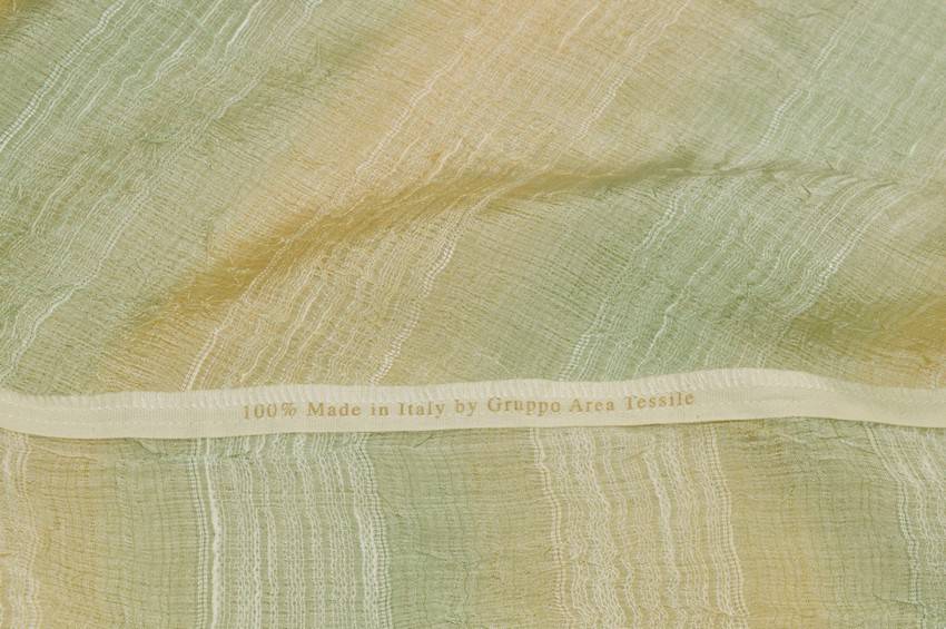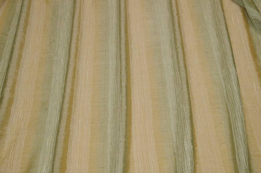 Tessuto stropicciato dalla mano trasparente e leggera. Presenta delle sfumature verde/beige, idoneo per realizzare qualsiasi tipologia di tenda.