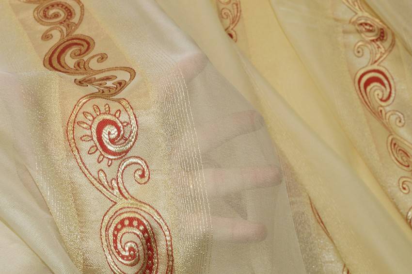 TESSUTO TENDA VELO FANTASIA ORO/BORDEAUX