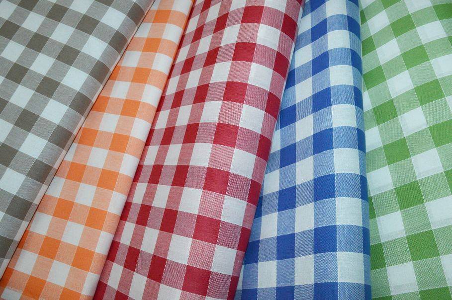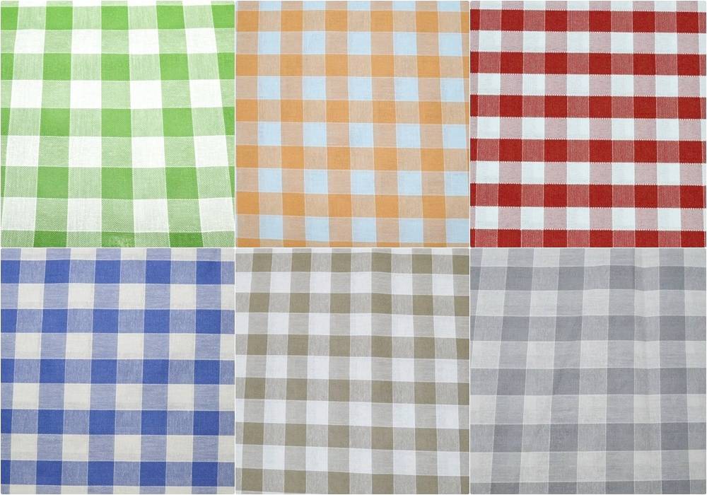 Tessuto in puro cotone tinto filo (dritto e rovescio uguale) idoneo per realizzare tovaglie e lavori di arredo cucina. Misura scacco cm 2.50x2.50