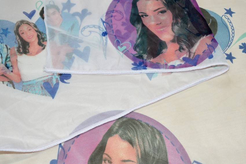 Tessuto per tende leggero, cadente e di fondo semi-trasparente. Decorato con stampa originale Disney dei personaggi principali della serie tv Violetta amata dai bambini. Ideale per realizzare tende arricciate.