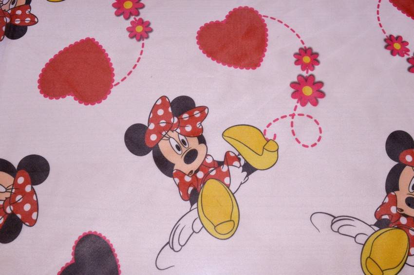 Tessuto dal finish liscio e cadente. Di fondo bianco semi-trasparente dona lucentezza all'ambiente. Viene inoltre decorato dalla colorata e simpatica stampa originale Disney di Minnie. Perfetto per donare allegria alla cameretta del proprio bambino. Ideale per realizzare tende arricciate.