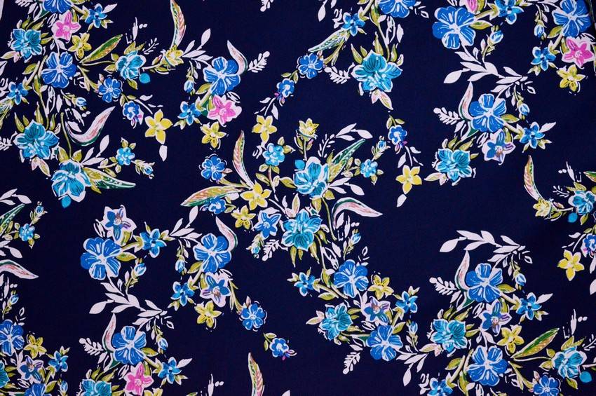 Vivace tessuto gabardine in cotone elasticizzato dalla mano fresca, morbida, cadente e coprente. Il fondo blu viene impreziosito dalla stampa floreale azzurra. Moderno ed allegro è perfetto per dare una svolta al proprio guardaroba realizzando pantaloni, gonne, abiti, camiciette e maglie primavera/estate.