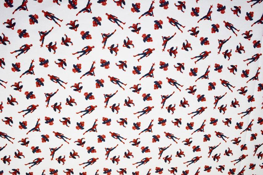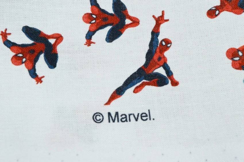Tessuto originale Marvel in puro cotone al tatto morbido, leggero, di pesantezza lenzuolo. Il fondo bianco viene decorato dalla piccola stampa di Spiderman in diverse pose. Colorato e divertente è perfetto per aggiungere un tocco giocoso alla stanza. Usato per piccoli lavori di arredo camerette come copricuscini e lenzuolini.