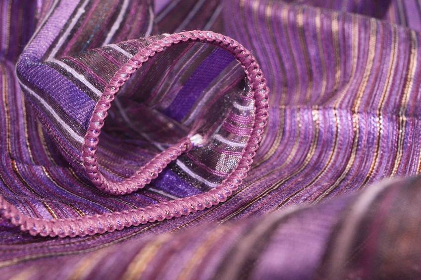 Splendido tessuto per tende semitrasparente. La fantasia rigata unisce diverse tonalità di viola, dona inoltre luminosità alla stanza poiché la stoffa risulta filtrante alla luce grazie alle sottili bande trasparenti in trama. Vivace ed originale è perfetto per ravvivare l'ambiente. Idoneo per realizzare tutti i tipi di tende arricciate.