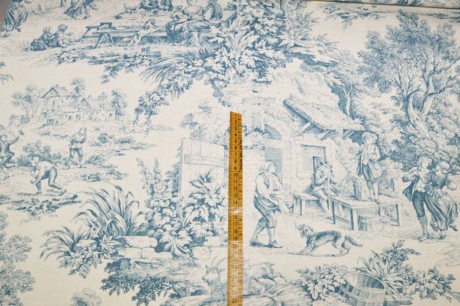 Vendita online cotoni toile de jouy tessuto cotone panama toile de jouy azzurro - Tessuti & Stoffe