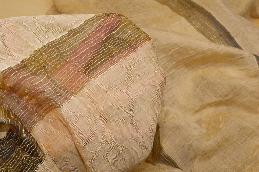 TESSUTO TENDA STROPICCIATO ORO CON APPLICAZIONI