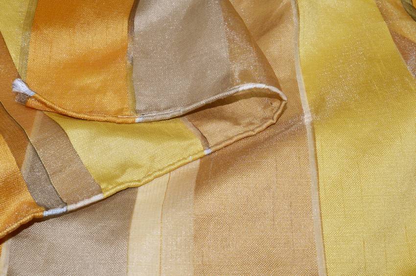 Tessuto per tende con fondo trasparente di mano leggera e cadente. La stoffa viene arricchita da righe luminose e coprenti in gradazione. Idoneo per confezionare tutte le tipologie di tende arricciate.