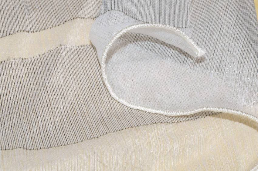 Tessuto per tende di fondo bianco morbido, legggero e filtrante alla luce. Le righe orizzontali grigie donano un aspetto moderno e minimal alla stoffa. Ideale per abbellire l'ambiente realizzando tende arricciate di ogni tipo.