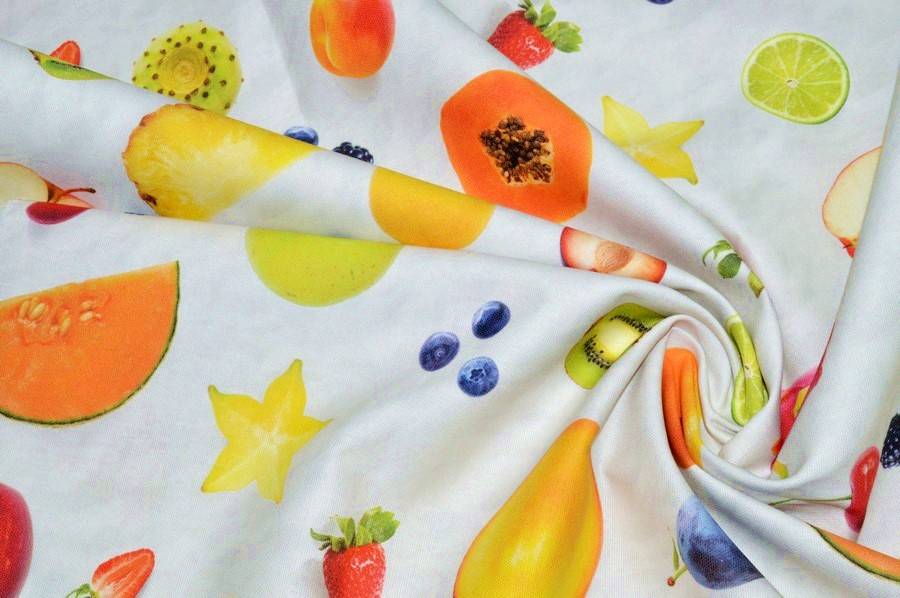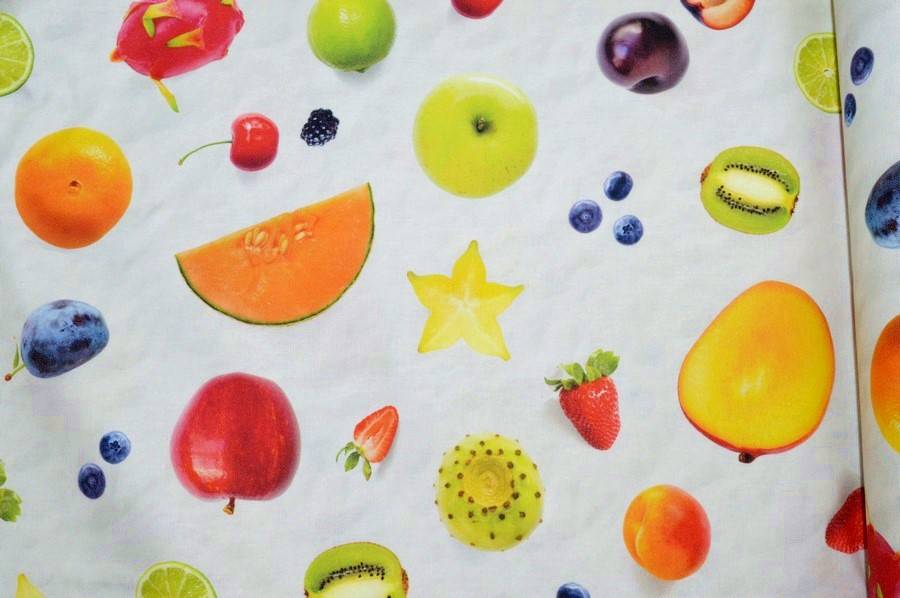 Vendita online cotoni fantasie cucito creativo cotone panama fantasia frutta altezza 140 - Tessuti & Stoffe