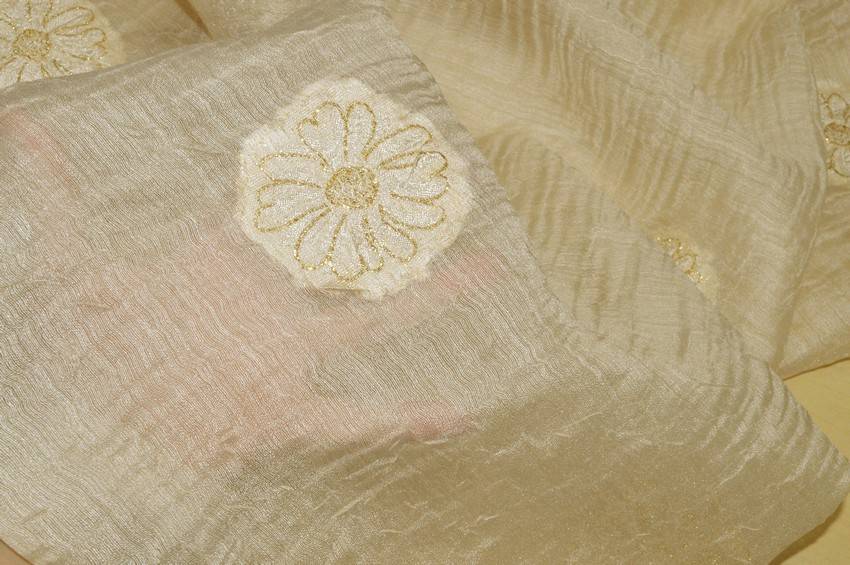 TESSUTO TENDA MISTO SETA CON RICAMO FIORE ORO