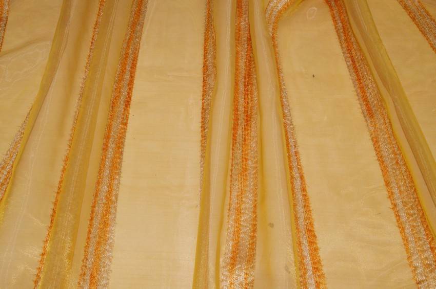 TESSUTO TENDA ORGANZA GIALLO/ARANCIO CON FASCE EFFETTO CINIGLIA