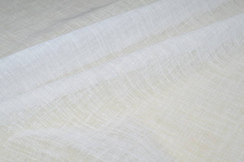 Splendido tessuto effetto lino color bianco naturale (non ottico, non panna) dall'aspetto elegante, cadente e semicoprente.